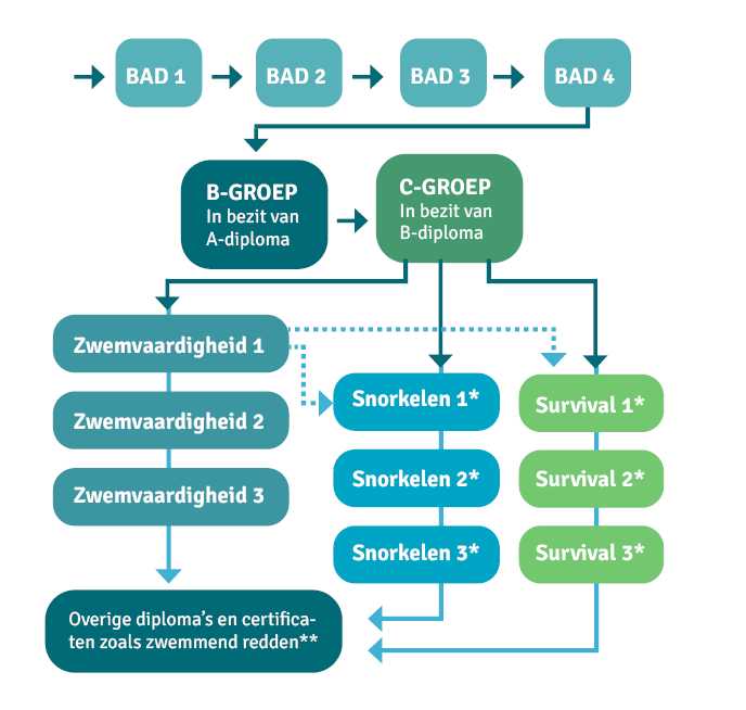 - Snorkelen: Hier kan gelijk na het behalen van C diploma mee gestart worden